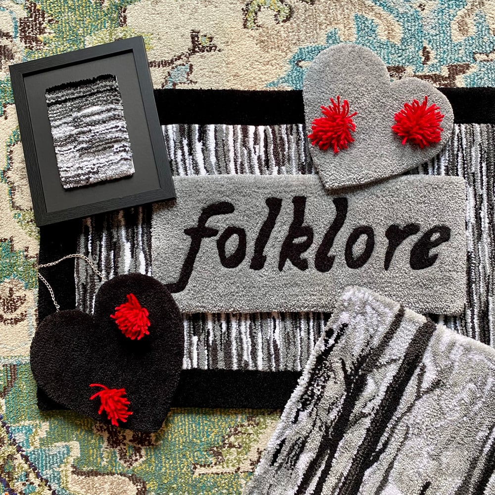 The folklore title rug is best displayed on the wall, but could be placed on the floor or surfaces (shelves, tables, etc.)